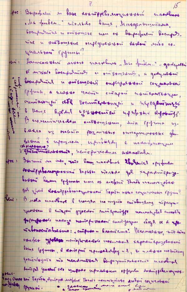 Вопрос: Признаете ли вы себя виновным в сочинении произведений контрреволюционного содержания?