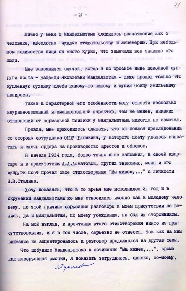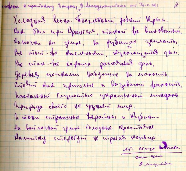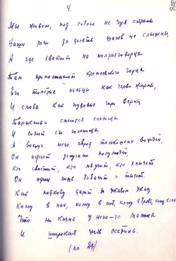 | Справка № 23 о контрреволюционных стихотворения «Холодная весна…» и «Мы живем, под собою не чуя страны…» от 2 июня 1935 г. |