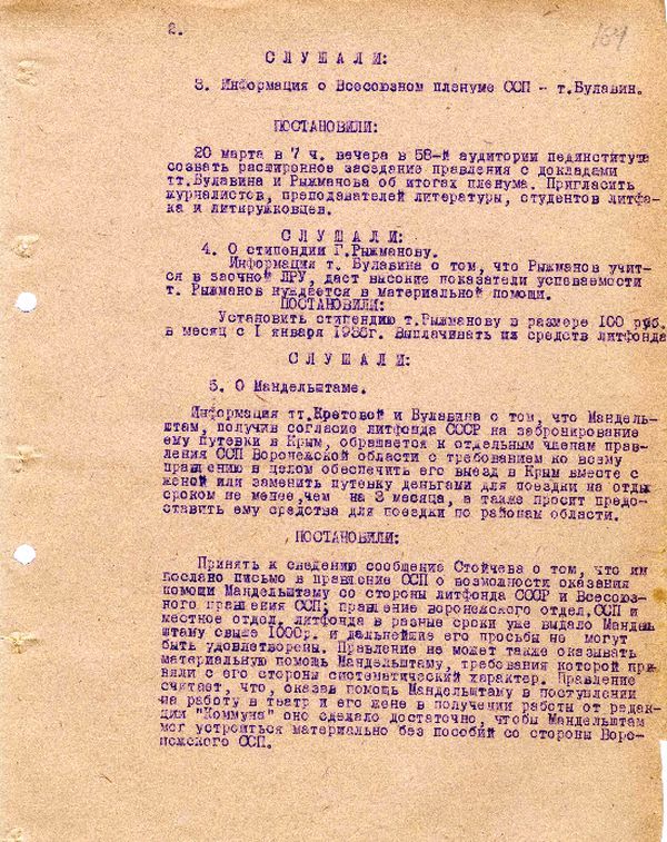 | Протокол № 3-4 заседания Правления Воронежского отделения ССП от 16 марта 1936 г. |