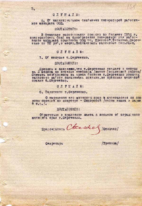 | Протокол № 8 заседания Правления Воронежского отделения ССП от 16 июня 1936 г. |