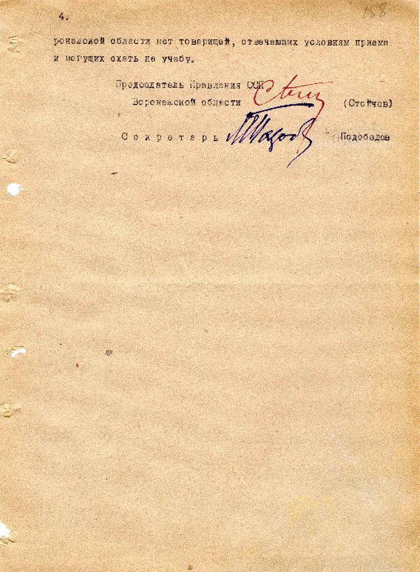 ГА общественно-политической истории Воронежской области. Ф. 2829. Оп. 1. Д. 1. Л. 167 - 169. Подлинник. Машинопись.