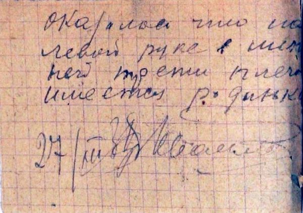 | Дактограмма О.Э.Мандельштама, снятая в пересыльном лагере после его смерти, 27 декабря 1938 года. |