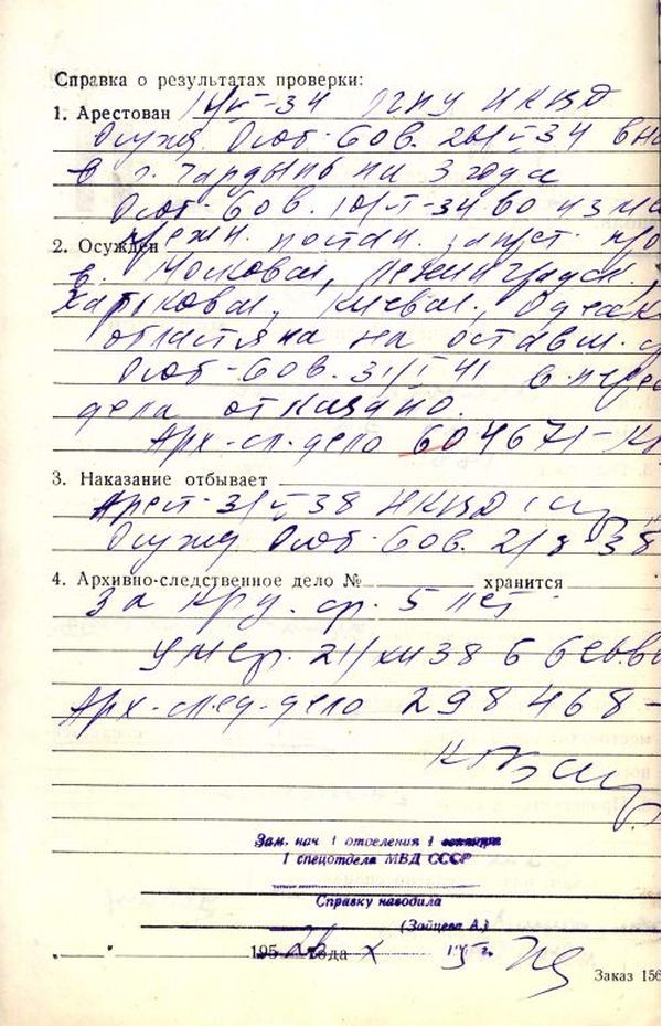 ЦА ФСБ РФ. Ф. Р-33487. Л. 40 - 41. Подлинник. Машинопись, подписи - автографы (вместо Я.М.Генкина расписался его заместитель С.Я.Зубкин).