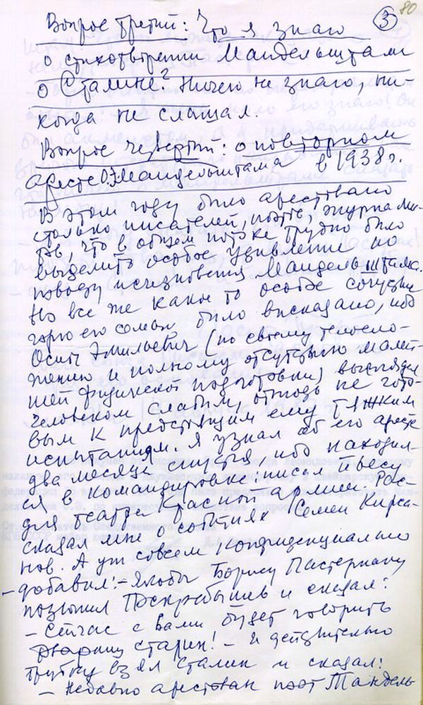 P. S. О Мандельштаме пишу еще раз (на об.), потому что Борис Пастернак в полном умопомрачении от ареста М-а и никто ничего не знает.