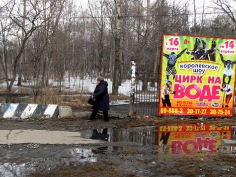 - Два года тому назад власти обещали разработать проект благоустройства парка и приступить к работам, но воз и ныне там, - продолжает Валентин Парчинский. - И, как следствие, грязь, разрушенный забор, утонувшие в воде дорожки. Даже снаружи вдоль парка между трамвайным полотном и забором парка нет тротуара для пешеходов – все затоплено водой и грязью. Люди вынуждены по шпалам трамвайных путей ходить от остановки к остановке, уступая проезжающим трамваям «дорогу». И как насмешка, у проломанного бетонного забора помещен щит, возвышающийся над лужей с рекламой цирка - «Цирк на воде» - «Королевское шоу».