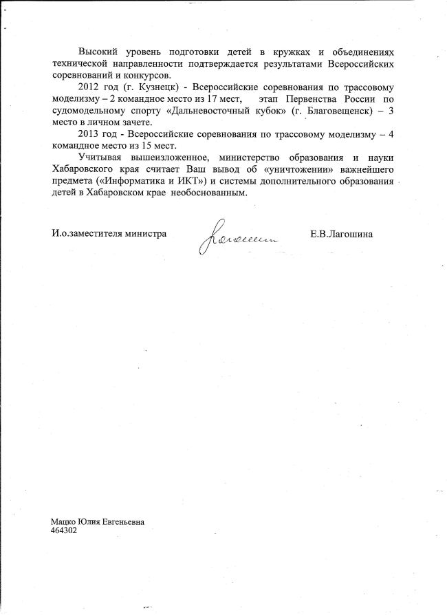Еще цитата из министерского ответа: «В 2012 и 2013 годах школьники Хабаровского края принимали участие в заключительном (общероссийском этапе) олимпиады по информатике».