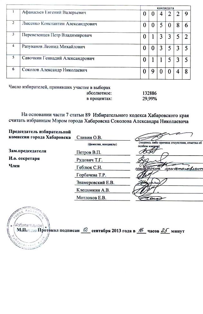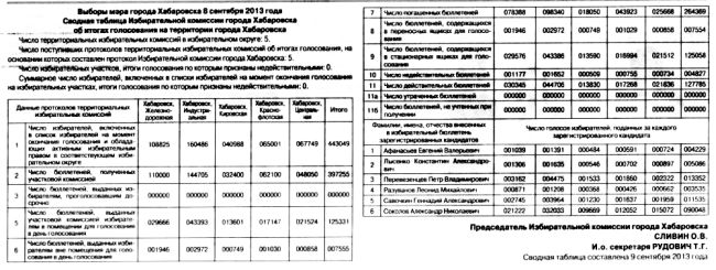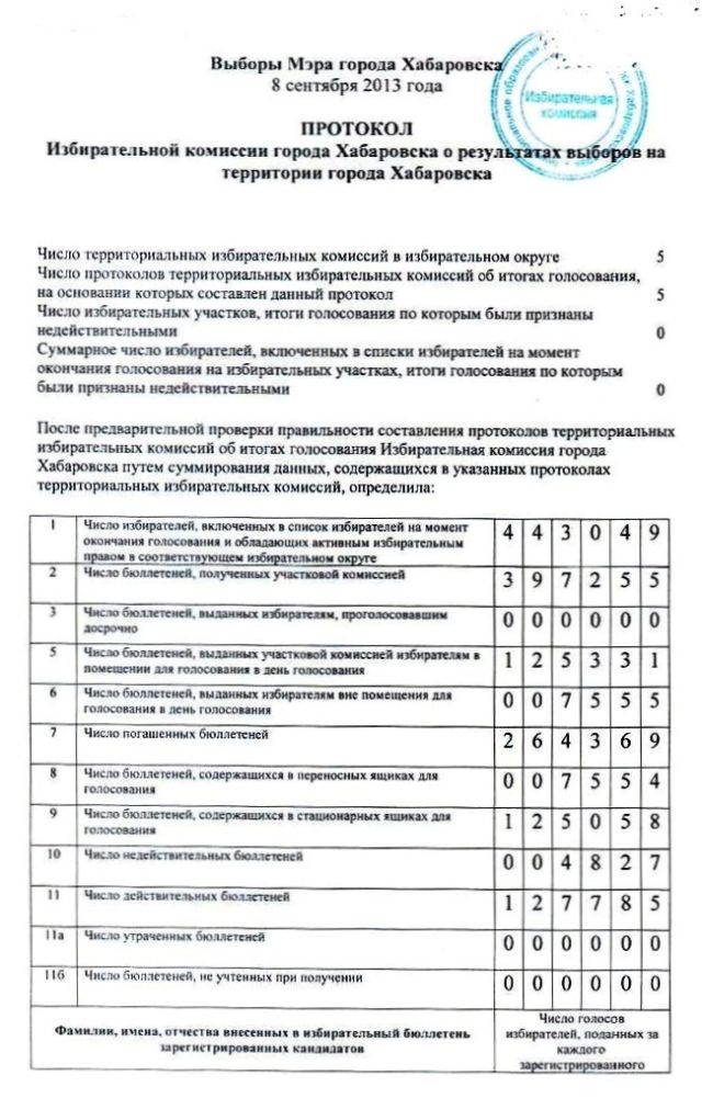 Официальные данные по выборам хабаровчанами мэра города выглядят так: