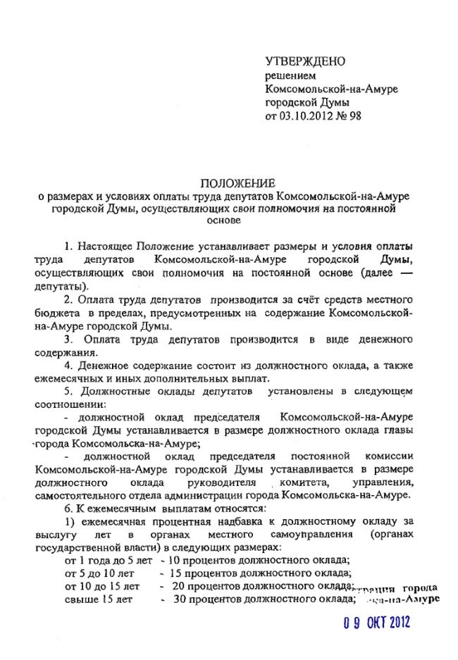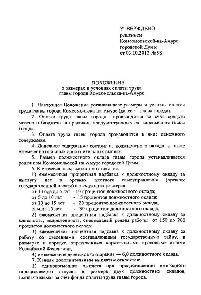 В администрации Комсомольска-на-Амуре даже не поленились и выполнили сравнительный анализ денежного содержания глав муниципальных образований Хабаровского края. Так вот, он показал, что премии им выплачиваются регулярно.
