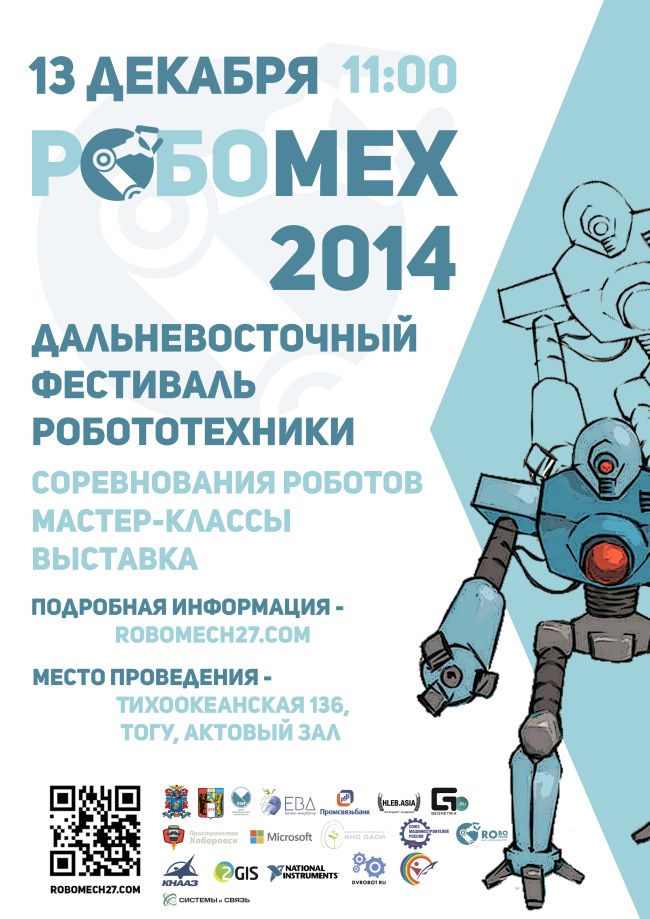 Фестиваль «Робомех 2014» состоится в субботу, 13 декабря, с 11.00 до 17.00 в актовом зале Тихоокеанского государственного университета (ТОГУ).