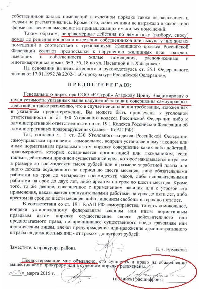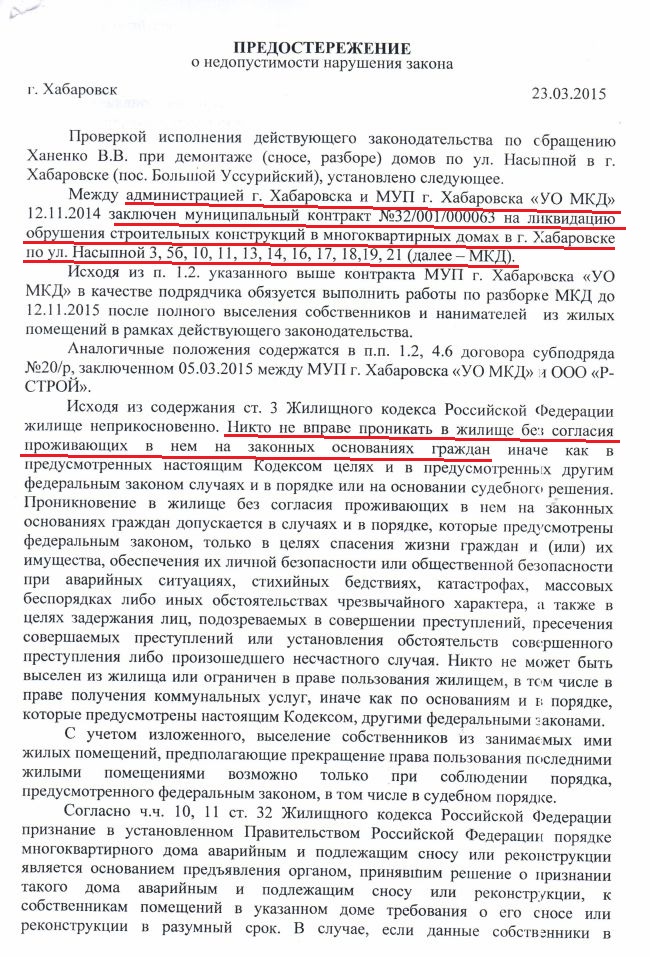 - Начальник департамента дальневосточного полпредства президента Дмитрий Ярков попросил жителей подготовить ему полный пакет документов обо всей этой ситуации, приложить туда всю нашу многомесячную переписку с чиновниками и силовыми структурами, а также их ответы, - заканчивает Валерий Ханенко. - Мы подготовили и передали. Если это не бюрократический фарс то теперь остается надеяться, что об этом проинформируют Юрия Трутнева и Владимира Путина. Как они отреагируют на фактический обман хабаровских властей? Не знаю… Сейчас в Хабаровске ждут Дмитрия Медведева на Чемпионат, мы бы очень хотели к нему обратиться, но кто же нас пустит?