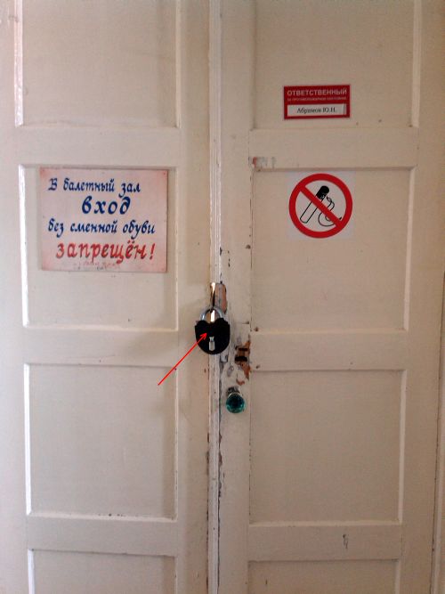Вот, балетный класс - о том что это балетный класс, а не амбар - свидетельствует табличка. Даже в Магаданском колледже искусств (МКИ), студенты обеспечены танцевальной обувью за счет колледжа, чего нельзя сказать о театре, где артисты сами себе покупают обувь для репетиций.