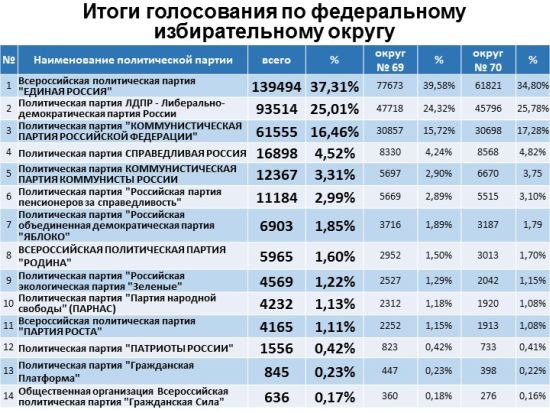 Итоги голосования по федеральному избирательному округу на территории одномандатного округа № 69 следующие.