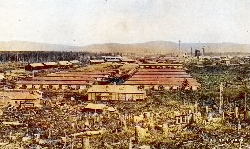 | Рождение города: целлюлозная фабрика и бараки рабочих на месте вековой тайги. 1925–1926 годы |