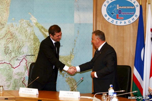 Сегодня в Хабаровске первый заместитель руководителя Администрации президента РФ Владислав Сурков представил полпреда в ДФО Виктора Ишаева руководителям органов исполнительной власти субъектов федерации Дальнего Востока.