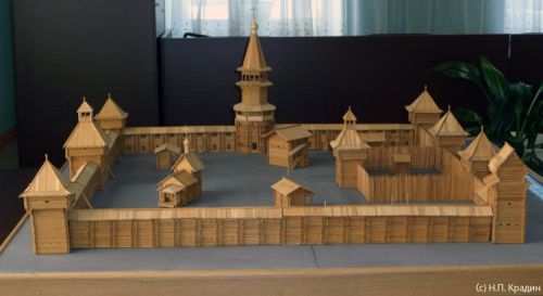 | Несколько лет назад очень точный макет-реконструкцию острога создал удивительный хабаровский ретро-архитектор и краевед Николай Крадин. |