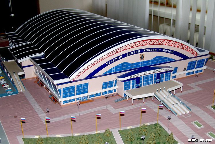 Здесь же (в районе нового микрорайона, по ул. Флегонтова) строится большой ледовый стадион для хоккея с мячом на 10 тысяч зрителей. Уже проведена отсыпка выше уровня затопления, поставлены фермы.
