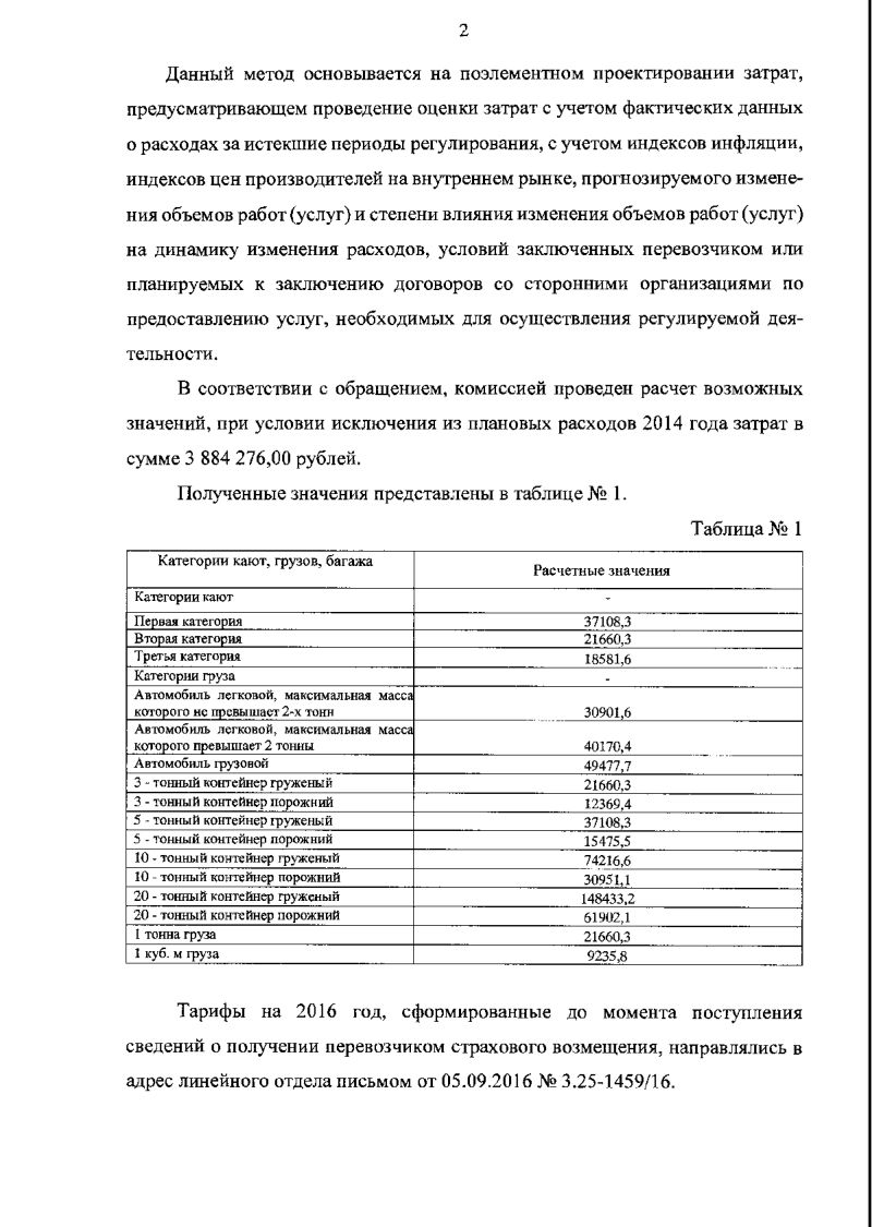 В заключении эксперта №011 от 06.04.2017 года, применена таблица №2 на стр. 4, а в последнем абзаце на стр. 3 указано: « Согласно письма РЭК Сахалинской области от 20.02.2017 №3.25-227/17 экономически обоснованные тарифы на пассажирские перевозки и грузовые перевозки морским транспортом на линии Северо-Курильск - Петропавловск-Камчатский теплоходом «Гипанис» на 2014 и последующие годы, при условии исключения из ИТОГОВОЙ СУММЫ 3 884 276 рублей по ремонту т/х «Гипанис». Однако в разделе «На экспертизу представлено» (стр. 7 и стр. 8 заключения эксперта №011 от 06.04.2017 года) среди перечисленных документов нет письма РЭК Сахалинской области от 20.02.2017 №3.25-227/17, нет данного письма РЭК Сахалинской области и в материалах уголовного дела №802068.