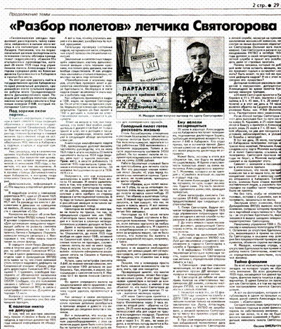 Во всей этой истории есть еще одна загадка, на которую трудно не обратить внимание. Во всех документах 1935 года, касающихся той давней трагедии, фамилия пилота пишется в двух вариантах. В одних бумагах он проходит как Святогоров, а в том же партийном постановлении значится Светогоровым.