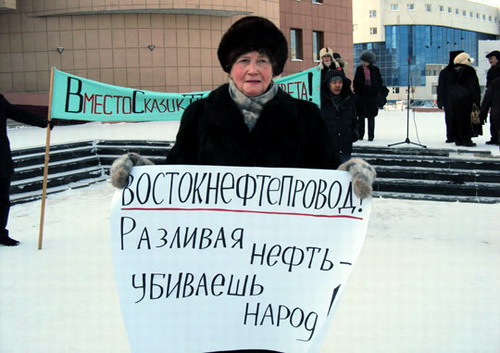 14 марта в Якутске состоялся митинг общественности, обеспокоенной авариями и разливами нефти на магистральном нефтепроводе «Восточная Сибирь – Тихий океан». Выразить свое несогласие с варварскими методами работы нефтяных компаний пришли около двухсот представителей общественных организаций - «Тумэн», «Вилюй», Ассоциации КМНС, Центр экологического просвещения РС (Я) «Эйгэ», - коммунисты, справедливороссы, преподаватели, студенты, простые горожане и гости столицы.
