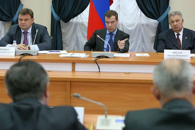 | Д. Медведев, В. Ишаев, О. Кожемяко (слева направо) |