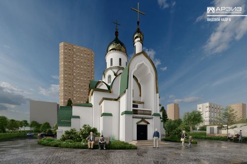 Новый эскизный проект учитывает мнения жителей района. Как сообщил главный архитектор ООО «АРЗИЗ» Алексей Охотников, храм будет двухуровневым. Силуэт здания имеет ступенчато-прямоугольную форму с доминирующим центральным объемом и состоит из трех основных частей: алтаря, средней части, притвора, что соответствует композиционным канонам зданий православных храмов.