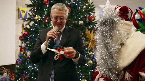Губернатор снял с елки два пожелания. Девятилетний Артем с Камчатки попросил велосипед и спортивный уголок. Одиннадцатилетний Арсений, который живет в поселке городского типа Мироновский в Донецкой Народной Республике, попросил акустическую гитару.