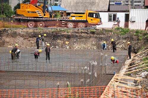 В данное время ведется подготовительная работа к заливке фундамента, а именно, подготовка каркасов арматуры. В здании школы будет четыре блока, включая входную группу. Под заливку фундамента готовы практически все.