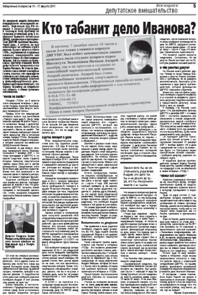 Родители погибшего привели нам множество фактов, подтверждающих их мнение о том, что руководство ДВГУПС пыталось всеми правдами и неправдами сделать так, чтобы академик Академии транспорта Иванов избежал скамьи подсудимых.