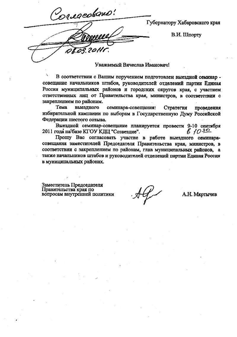 Хабаровский губернатор согласовал подготовленный замом график совещаний по выборам «ЕдРа»