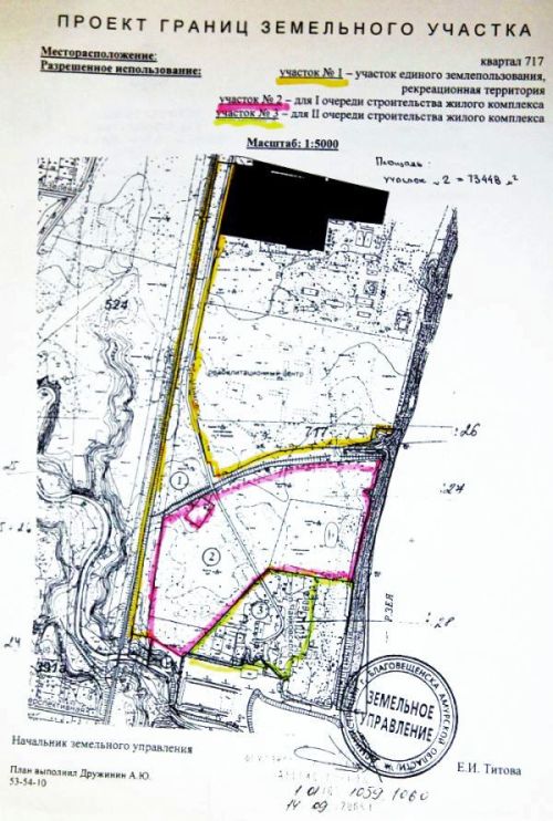 Настоящие страсти на протяжении многих лет кипят вокруг так называемой «дачи Колесова». Напомним, что в 2007 году Николай Колесов возглавил Приамурье, и он же выбрал в качестве места отдыха бывший военный городок «Санаторный №13» на территории памятника природы «Урочище Мухинка». С тех пор хозяева дачи периодически меняются, словно захватчики или оккупанты, пишущие новую историю Амурской области суконным языком милицейских протоколов. Владелец участка (московская фирма «Паллант») безвозмездно передал объект в собственность правительства Приамурья. Строительство дачи было начато, но в 2008 году, накануне снятия с господина Колесова губернаторских полномочий, он вернул объект прежнему собственнику. Возведение дачи остановилось на уровне нескольких этажей, а вскоре новым владельцем участка стала фирма «Офеня».