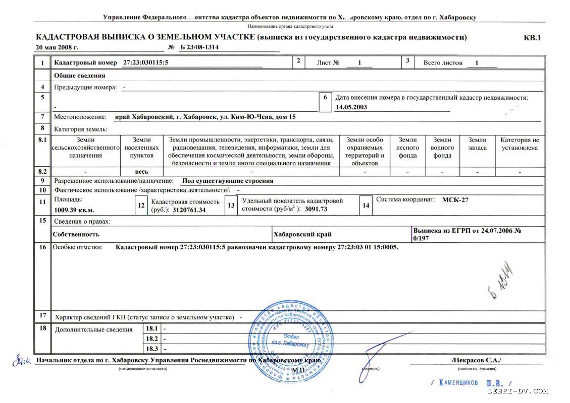3. Что касается кадастровой стоимости земли, то она рассчитывалась по Постановлению Правительства Хабаровского края №210-пр от 30.10.2007 г. (копия прилагается), выпущенного на основании соответствующего федерального закона и составляла 2,5% от кадастровой стоимости.