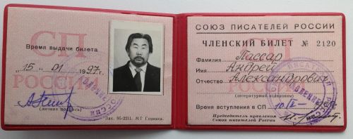 | В 1955 году Андрея Пассара приняли в члены Союза писателей СССР. Билет члена Союза писателей России. Нажмите, чтобы УВЕЛИЧИТЬ. |