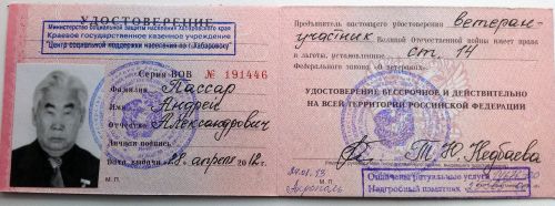 | Удостоверение ветерана Великой Отечественной войны. Нажмите, чтобы УВЕЛИЧИТЬ. |