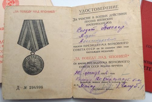 | Медаль «За победу над «Японией». Нажмите, чтобы УВЕЛИЧИТЬ. |