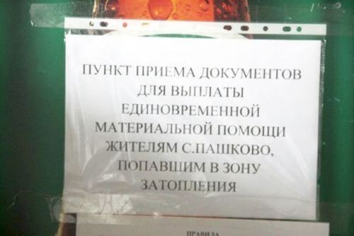 Для получения такой помощи, указанной категории граждан необходимо обратиться в пункт регистрации. При себе следует иметь паспорт всех членов семьи, зарегистрированных в пострадавшем от паводка доме.
