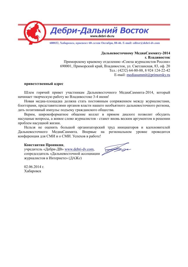 Шлем горячий привет участникам Дальневосточного МедиаСаммита-2014, который начинает творческую работу во Владивостоке 3-4 июня!